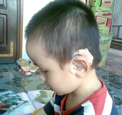 Máy trợ thính đeo sau tai là thiết bị hữu ích giúp trẻ nghe kém tiếp nhận âm thanh và phát triển như trẻ bình thường