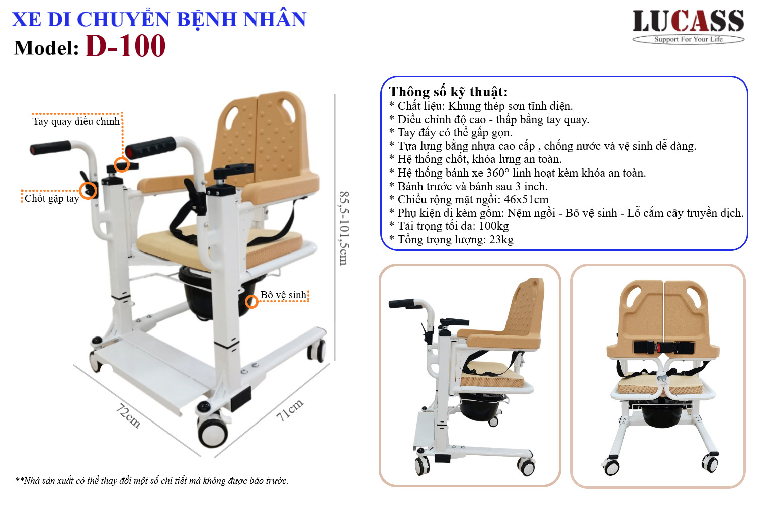 Xe di chuyển bệnh nhân Lucass D-100