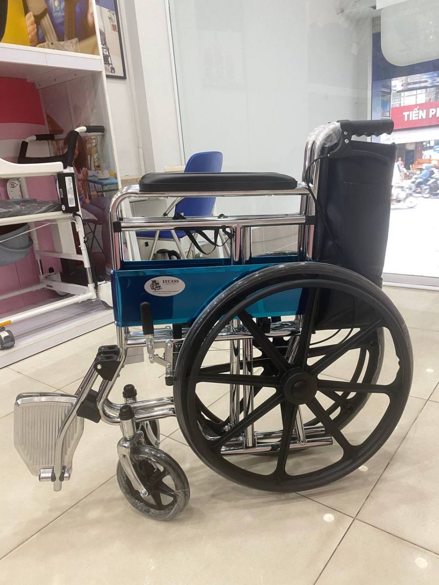 – Gác chân có thể nâng hạ theo tư thế ngồi của bệnh nhân, ngoài ra còn có thể gấp vô lại khi không cần thiết.